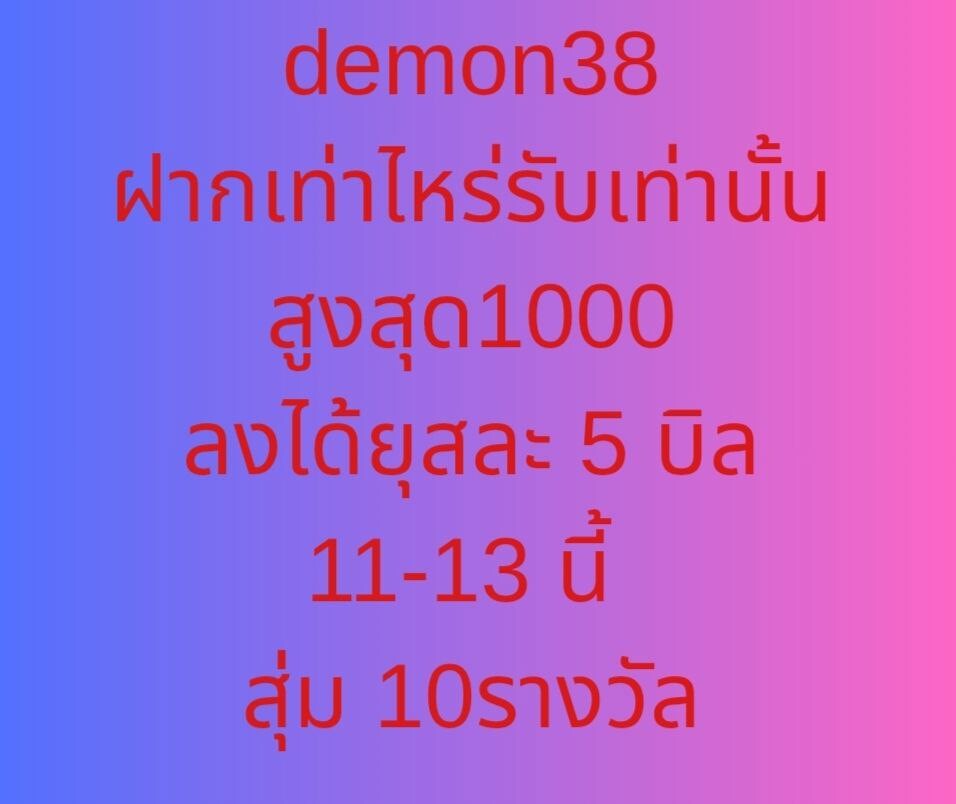 พร้อมให้บริการสมาชิกเก่าและสมาชิกใหม่ทุกๆท่าน และยังสมารถทดลองเล่นกับ D E M O N 3 8 เครดิตฟรี อีกด้วย ยินดีให้บริการตลอด 24 ชั่วโมง